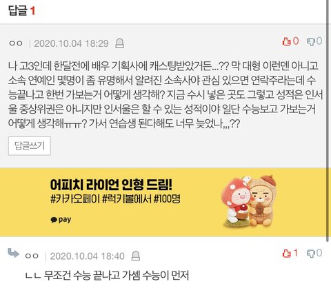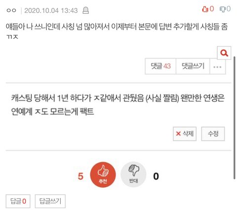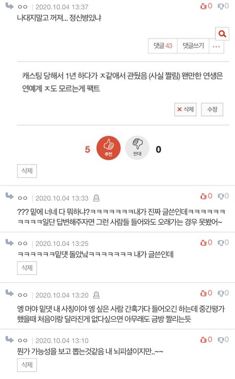 캐스팅 당해서 1년 하다가 ㅈ같애서 관뒀음 (사실 짤림) 왠만한 연생은 연예계 ㅈ도 모르는게 팩트
