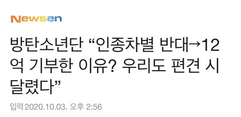그룹 방탄소년단(RM, 진, 슈가, 제이홉, 지민, 뷔, 정국)이 인종차별 반대 캠페인을 위해 약 12억 원을 기부한 이유를 밝혔다.