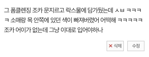 세탁기에 한번 돌려봤거든..? 이지랄임 나 어떡해 ㅋㅋㅋㅋㅋ