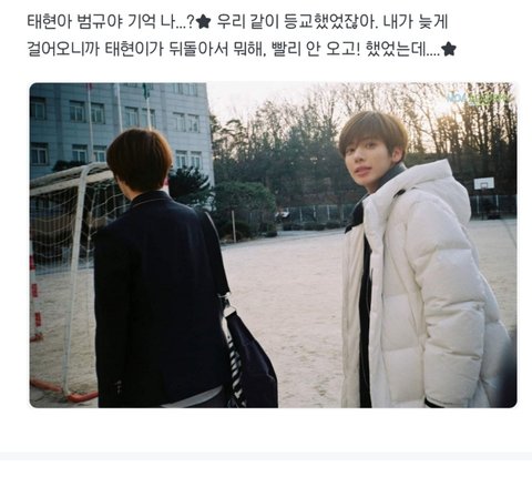 태현아 범규야 기억나? 우리 같이 등교했었잖아