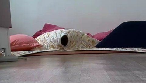이불로 꽃을 만들고 밖으로 나와 식빵 굽고 있음.
