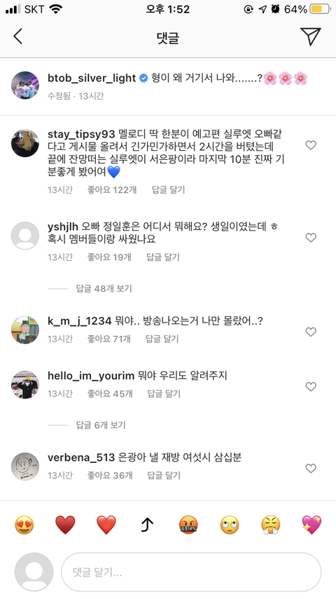 은광 인스타 댓글 봤냐..ㅋㅋㅋㅋ