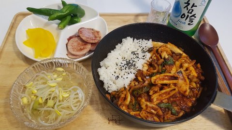 오징어 볶음이랑 콩나물국!