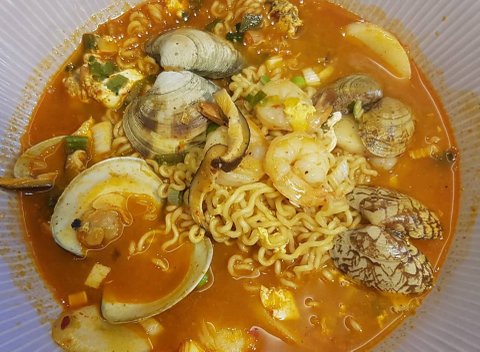 냉동새우,바지락,생합,표고 버섯 넣고 짬뽕라면