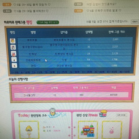 그리고 이렇게 하루 판매 그릇 량 순위도 나와,, 관리자 분이 요즘 사이트 관리를 잘 안하시는 거 같긴한데 순위는 맨날 업로드 되더라공 ㅎ