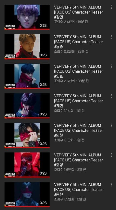 베리베리는 항상 캐릭터 티저라는 멤버별 영상 티저가 뜨는데