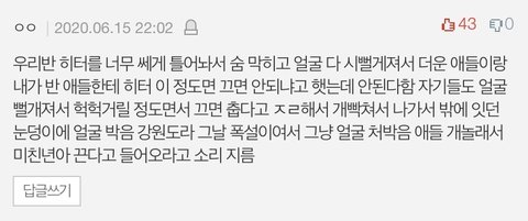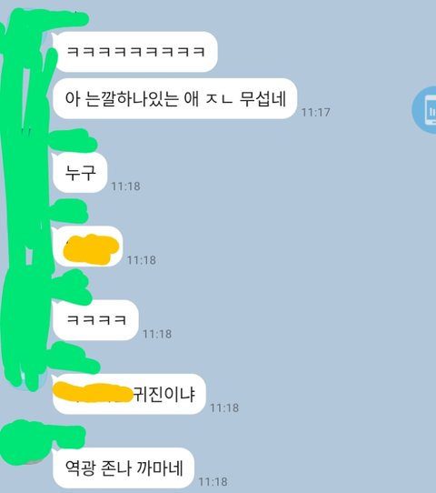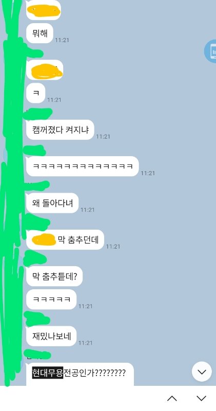 음 어제 줌으로 실시간 체육수업 하는데 지루해서 춤췄어. 캠 꺼진줄알고 아무도 안본다 생각하고 펄쩍펄쩍 뛰면서 파워레인저춤? 췄는데 애들이 실시간으로 나한테 톡보내더라