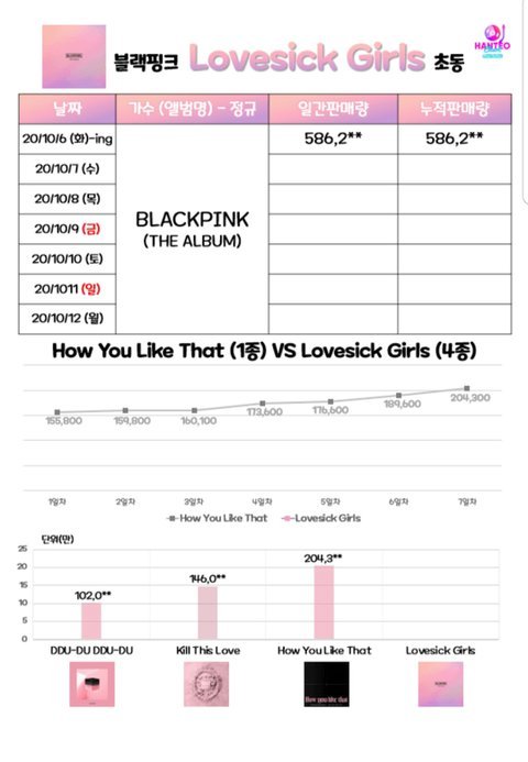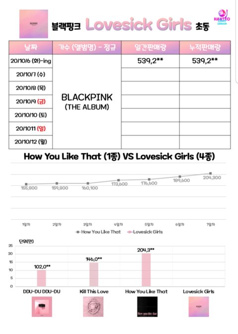 그동안 쳐맞던 음반,,,, 첫날에만 53만장 나감ㅋㅋ 싱글 하유랔댓도 초동20만에 총판30만에 뚜두뚜두 킬디럽도 꼴랑4곡으로 아직까지도 계속 팔림