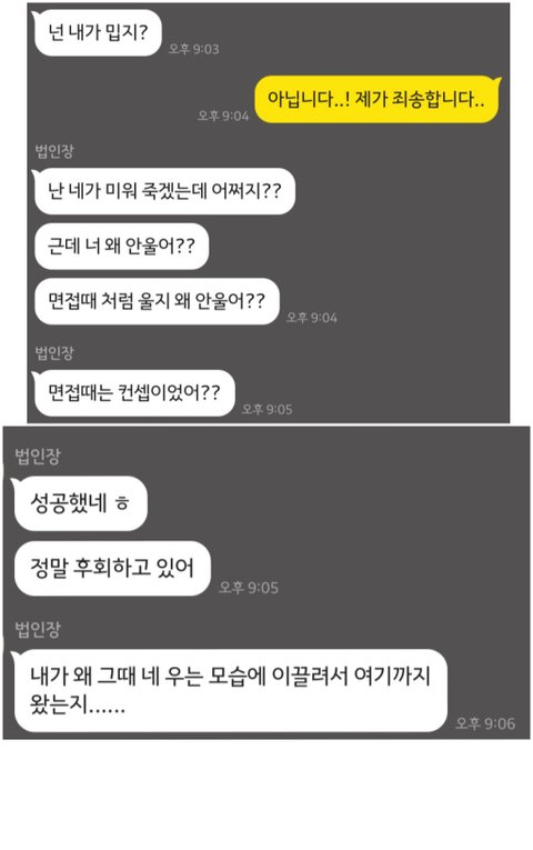 나중에 알고 보니까 저 울리고 싶어서ㅋㅋ그때 왜 안울었냐고 카톡이 왔어요^^ 변태새끼