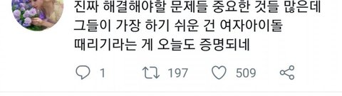 그리고 10대판 분탕질치지말고 엔터나 쳐가라 이렇게 페미니스트 수준ㅋㅋㅋ 글 올리면서 관심받을려는 거 ㅈㄴ 티나