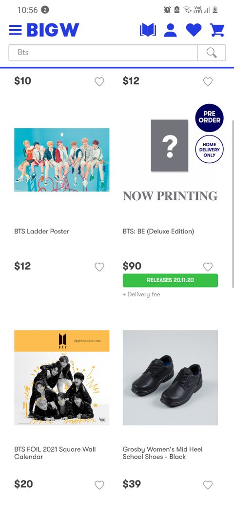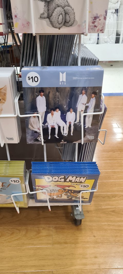 호주에는 Big W 라는 큰 마트가 있는 데(한국의 이마트 쯤 생각하면 됨.) 진짜 큰 몰에 가면 꼭 하나 씩있는 삼대 마트 중 하나인 이곳에 BTS 정규 캘린더가 공식적으로 들어 온 거임.
