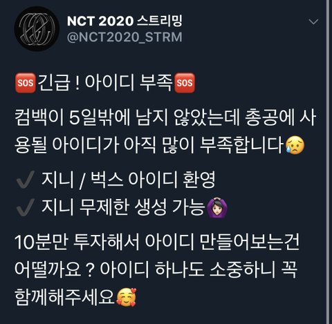 금방 한다고 조금씩이라도 보내자 이러다 총공 무산되면 나 운다 ㅎㅎ