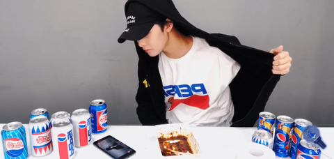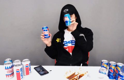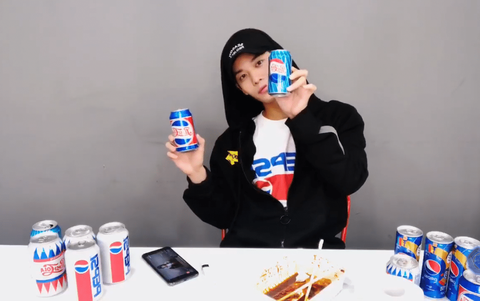 펩시 콜라와 함께 앉아있었음