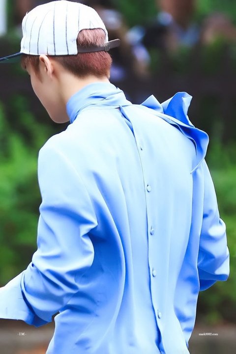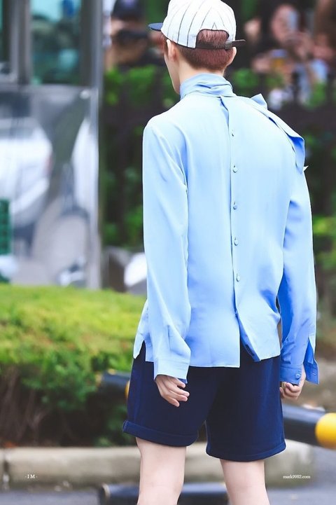 마크가 입고 있는 꾸깃꾸깃한 하늘색 상의가