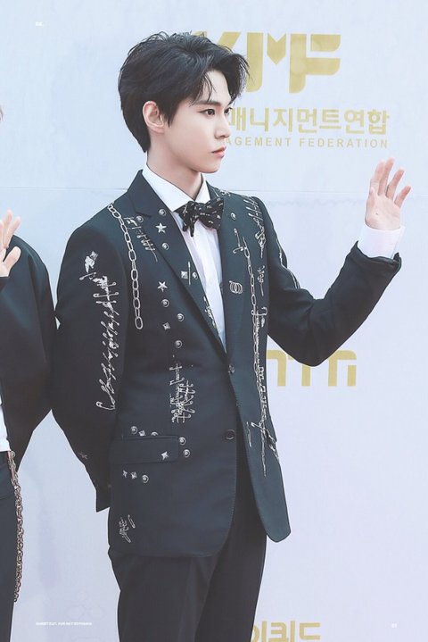 화려한(=이상한) 무늬의 정장 자켓을 입은 도영