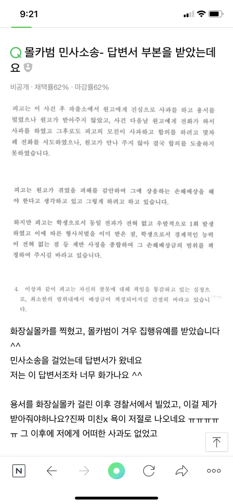 저는 인문대, 가해자는 공대생이었는데 인문대 화장실에 제가 들어가는걸 보고 따라 들어와서 촬영을 했다고 진술서에 작성했더라구요