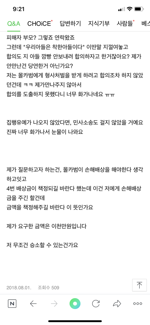 가해자 어머니로부터 합의를 해달라는 연락이 계속해서 왔지만 저는 합의를 하지 않았어요.