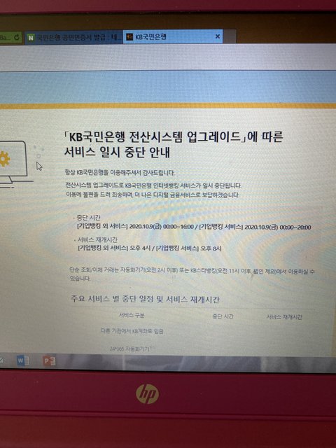 지금 집에 있는 노트북이 공인인증서가 만료되서 재발급 받으려고하니까 국민은행 홈페이지가 일시중단 상태네요.