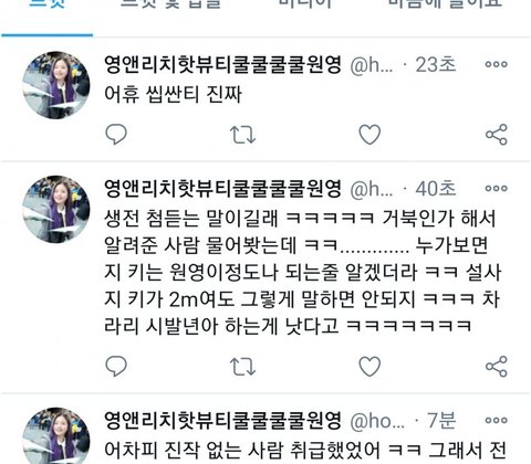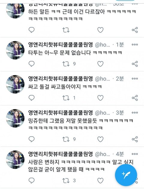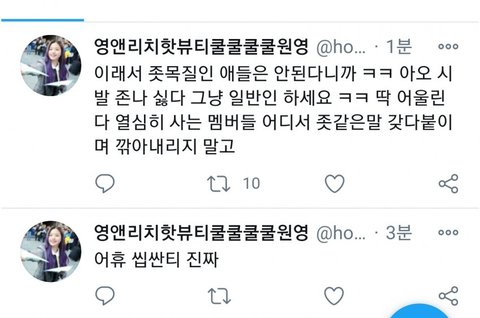 진짜 열폭러들 이것도 비추 테러ㅋㅋㅋ 여성 인권 타령하면서 잘난 애들한테는 심술 부림