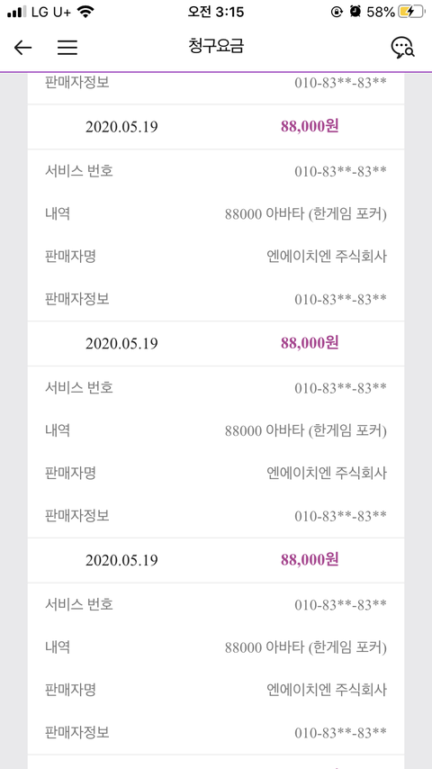 으로 3~4개월 간 총 340만원 가까이 소액 결제를 해왔습니