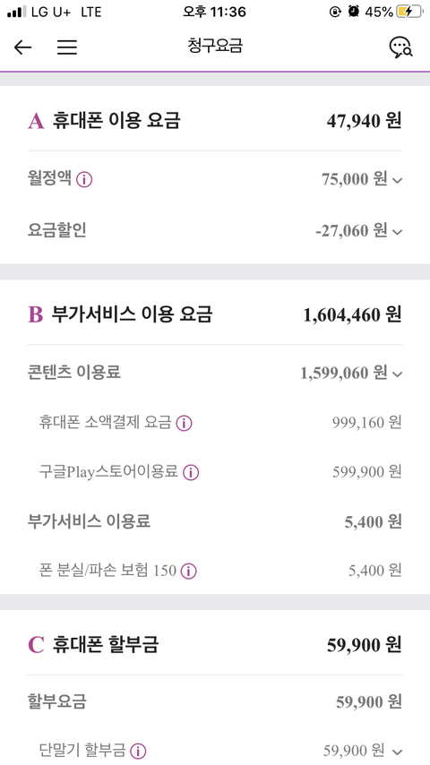 무 많이 나와 이상하게 생각하여 들어가보니 모두 소액결제