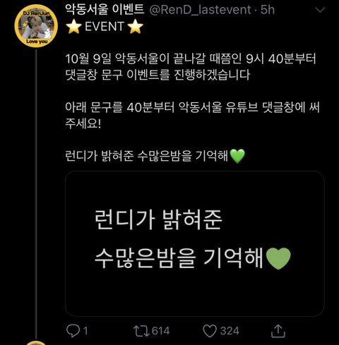 많이 못본거같아서 다시 올려 바빠도 한번씩 들러서 해줘! 공지 올라간 글은 방송 끝나면 내릴게 런디 마지막 우리 함께하자 ㅠ