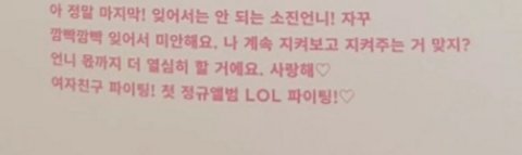 연습생때 서로 의지하고 친했던 소진이 소원 데뷔하고 한달 남짓 후에 우울증으로 자살했는데 그걸 핸드폰이 없어서 뒤늦게 알았다고 함.. 나 이 이야기 지금 알았는데 진짜 멘탈 강한 듯...