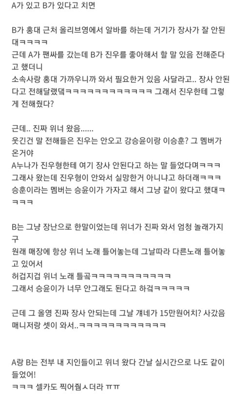 이너써클들아 위너 일화 좀 풀어주라!!