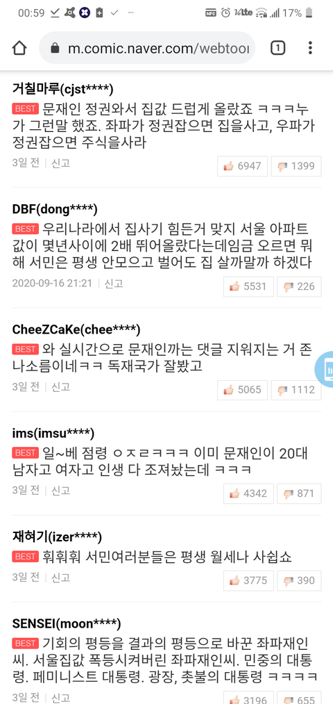 웹툰댯글이 왜 이모양임????