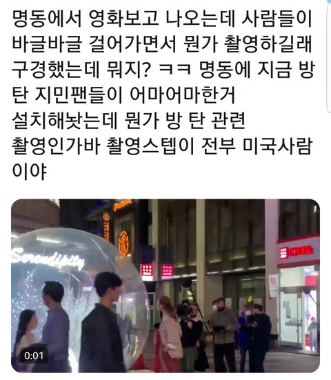 방탄 지민 명동 거리 미국에서 취재라니 ㄷㄷ