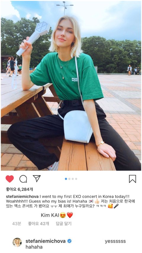 엑소팬이고 카이 최애임을 밝힌 미초바는 엑소콘서트에도 에리디봉 들고 오는 찐팬임
