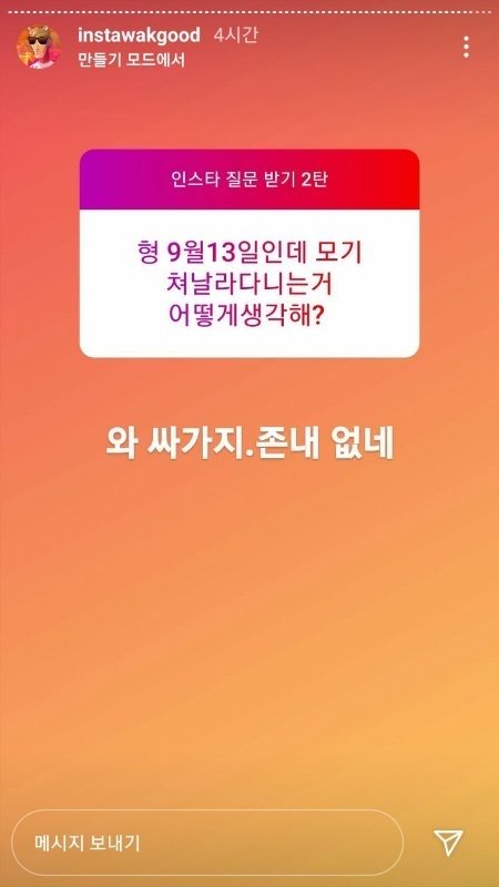 아무튼 내가 그뒤로 걔 투명인간 취급하고 무시했는데 걔가 인스타랑 페북 스토리에 나 저격에서 올린거임 무시하니까 재밌냐 이런식으로