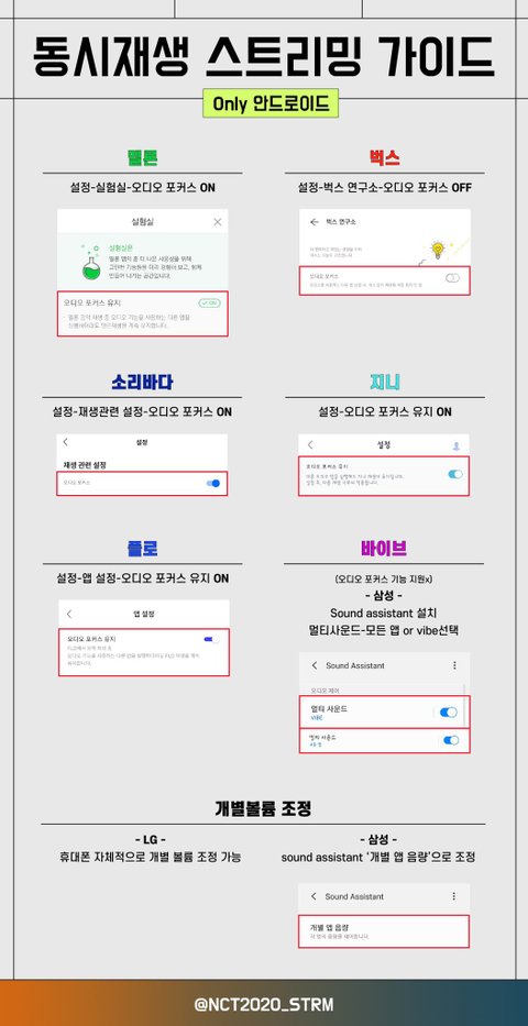 스밍인증불판은 정말 독려 그 자체의 목적과 취지로 만들어가는 거라서 불판글을 향한 관심과 참여가 즈니들 한 명이라도 스밍을 더 돌리게 되는 계기가 되고, 그렇게 차곡차곡 모인 즈니들이 끝까지 스밍을 놓지 않는 계기가 될 수도 있어. 거짓말 안치고 2분이면 가능하니까 많은 참여 부탁해!앞으로 매일 불판글이 올라오게 될 텐데 매 글마다 이미지들 이것저것 올리는 것보다 스밍리스트 이미지만 첨부하는 게 보기 간단하고 좋을 것 같아서 가이드 사진들은 이 글에만 올리려고 해. 불판글에는 이 글을 링크로 걸어둘게!