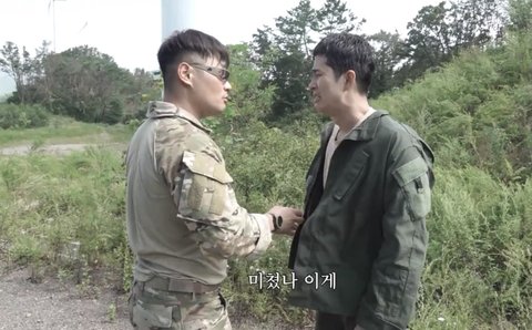 민수가 이제 힘들어서 못걷고 있을때 제이크교관이 이제 퇴교하라고 옷벗길라고 했는데 민수가 손으로 막아서 ‘이게 미쳤나’ 라는 발언 문제