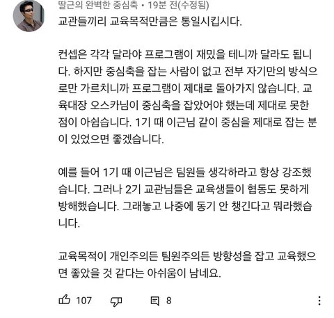 1기가 더 좋았다30%+ 교관들의 문제점 60%+ 안볼사람은 보지말아라10%