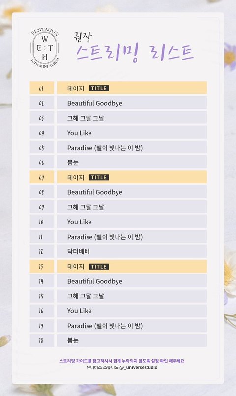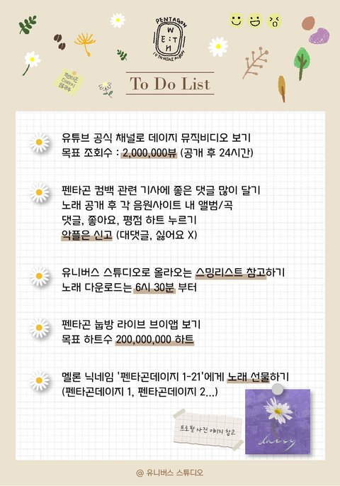 5. 펜타곤데이지 1-21 한테 데이지 선물하기 (10번 가능)