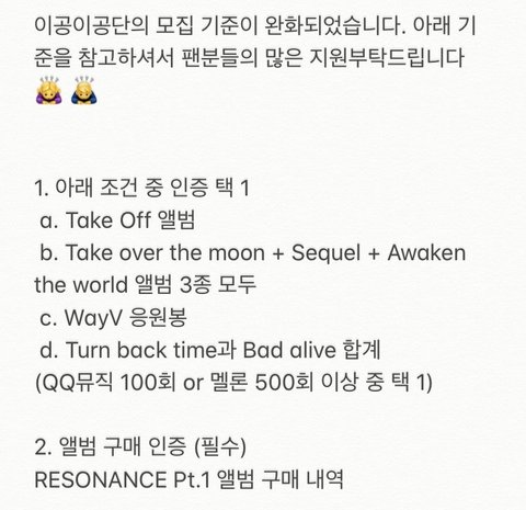 얘들아 이공이공단 많이 가입해줘 ㅠ 우리 모금은 많아도 지원이 적으면 총공을 못해 ㅠㅠ 자격 조건도 많이 완화되었으니까 한 번씩 생각해줘!