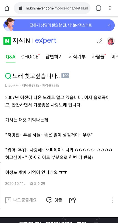 진짜 이노래가 너무 찾고싶은데 찾을수있을까..?