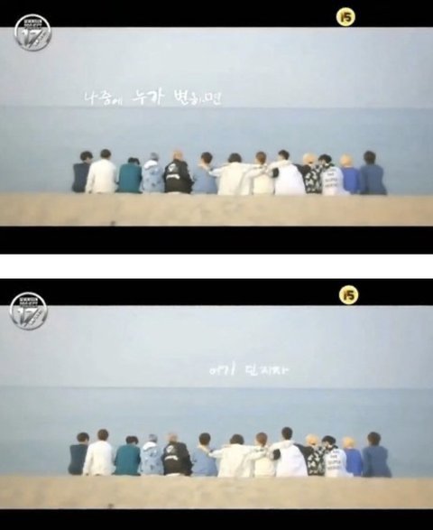 이거임. 세븐틴 단체사진인데 여기가 세븐틴 TV 때 갔던 바다라고 했나..?