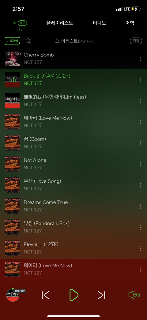 이렇게 하면 안되구 재생목록에 스밍할 곡만 있어야되는거야?
