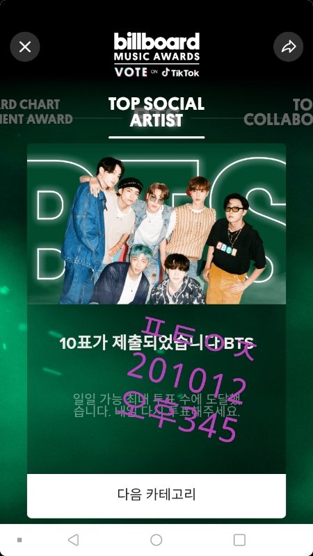 아! 티크토크 투표할때 꼭 완료버튼 눌러줘