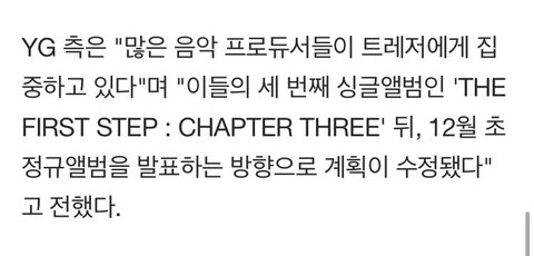 그면 올해 총 4번 나오는거임 8월데뷔 + 9월 챕터2 + 챕터 3 + 12월정규 위너 블핑 트레저 내리사랑 중인데 와이지 파면서 컴백 너무 자주 시킨다고 걱정해보긴 처음이네
