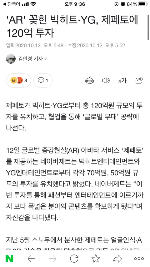 빅히트 YG 제페토에 120억 투자함ㅋㅋㅋㅋㅋㅋ