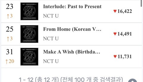 서양수박차트 안에 12곡이나 있어.......ㅠㅠ