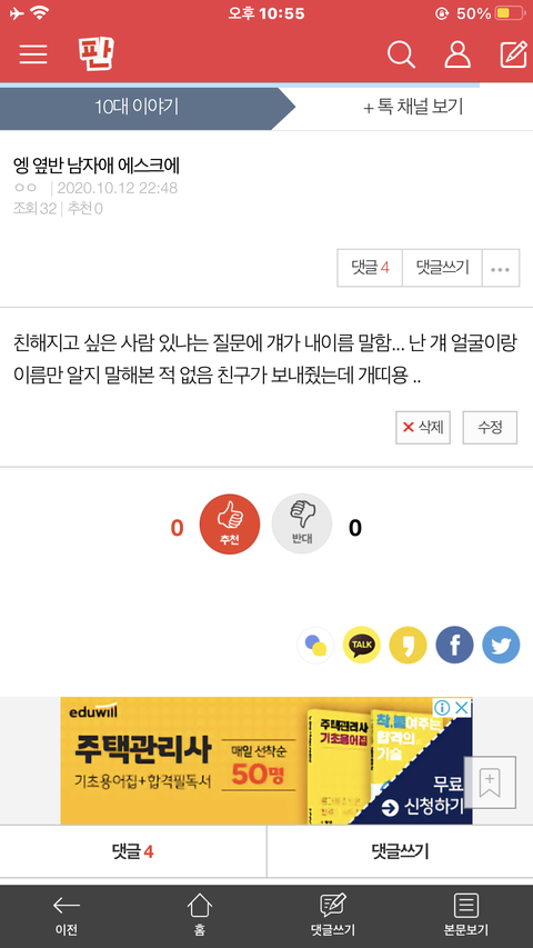 아 머야 왜 삭제돼ㅛ지 나 옆반 남자애 에스크 걔임