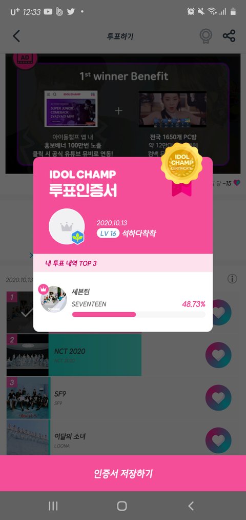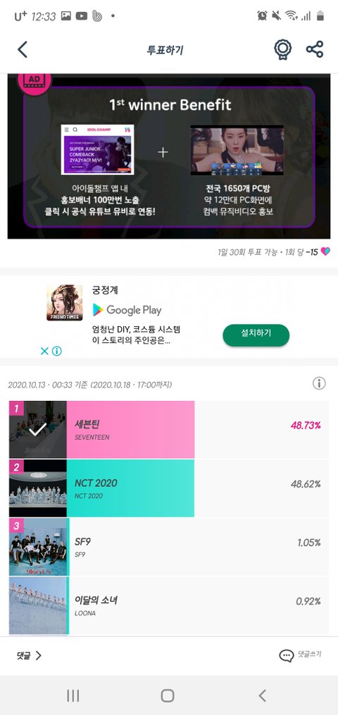 아챔투표도ㅎㅎ.. 우리 1위함..!