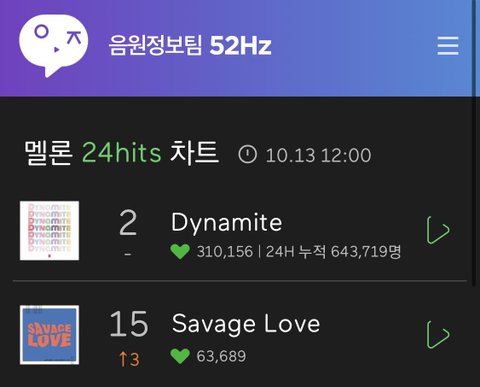 새비지럽 멜롱 25hit 15위까지 올라옴