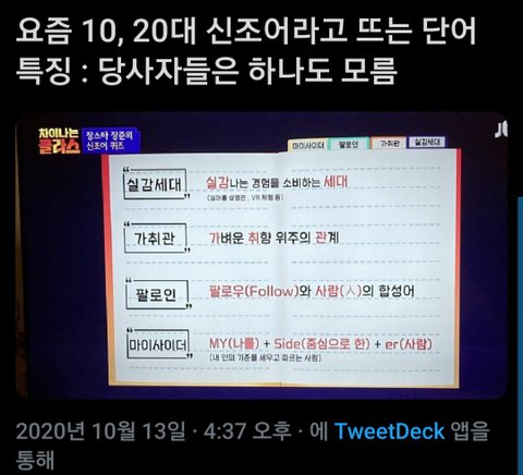 요즘 10,20대들의 신조어라고 뜨는 단어