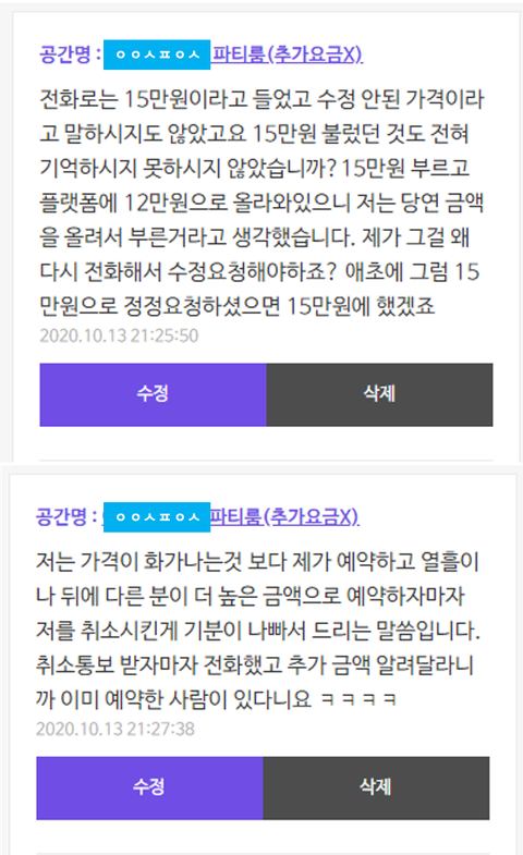 아니 파티룸 예약을 이렇게 경매식으로 해도 되는거야?