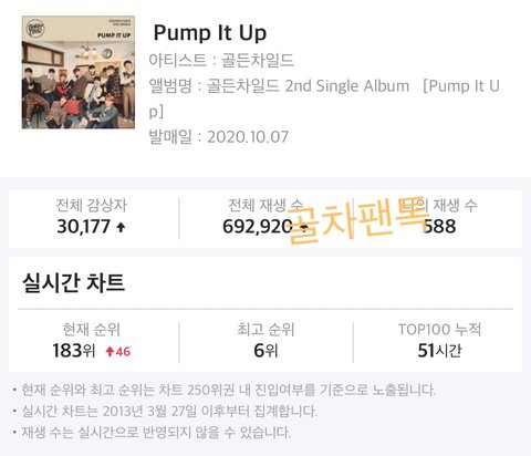 음원 성적은 더 좋은듯 원 감상자 수 벌써 넘었어 차트에 있어서 더 듣는 것도 있겠지만!
